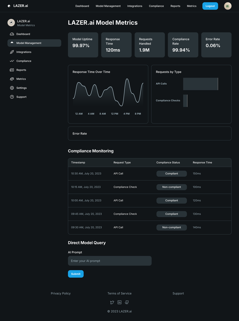 This innovative model doesn't just react to risks; it learns, predicts, and safeguards your operations with unparalleled precision. By integrating this next-generation technology, Lazer.io is setting a new standard for secure, compliant, and forward-thinking business solutions, empowering you to focus on innovation without compromise.